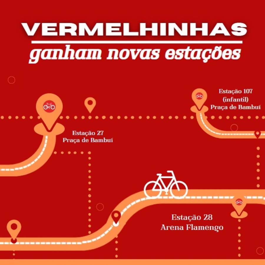 A Prefeitura de Maricá, por meio da Empresa Pública de Transportes (EPT), segue avançando em sua missão de promover uma cidade mais sustentável e acessível. Neste sábado (05/10), 3 (três) novas estações de bicicletas compartilhadas, as populares "Vermelhinhas", serão inauguradas. Uma estação adulta (Estação 28) será instalada na Arena Flamengo, enquanto as outras duas (Estação 27 e Estação 107), sendo uma adulta e outra infantil, estarão localizadas na Praça de Bambuí.