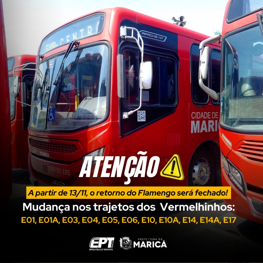 Com o fechamento do retorno, os ônibus das linhas E01, E01A, E03, E04, E05, E06, E10, E10A, E14, E14A e E17, seguirão um novo trajeto e farão o retorno no KM28 (Maminha de Ouro), em Itapeba, próximo ao CEU da Mumbuca.