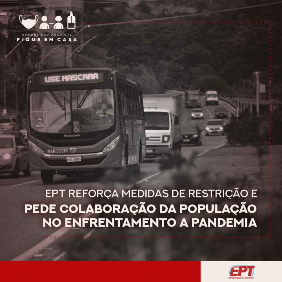 Desde o início da pandemia a EPT tem tomado diversas medidas para conter o avanço da doença no serviço de transporte público de passageiros. A EPT realiza testes gratuitos de COVID mensalmente, em conjunto com a Secretaria Municipal de Saúde, em todos os servidores e profissionais das empresas contratadas da EPT. São disponibilizados dispensers com álcool gel para higienização das mãos dentro de todas as instalações da Autarquia e também dentro de todos os ônibus; o uso de máscaras é obrigatório para embarque e a higienização e limpeza da frota foi redobrada.